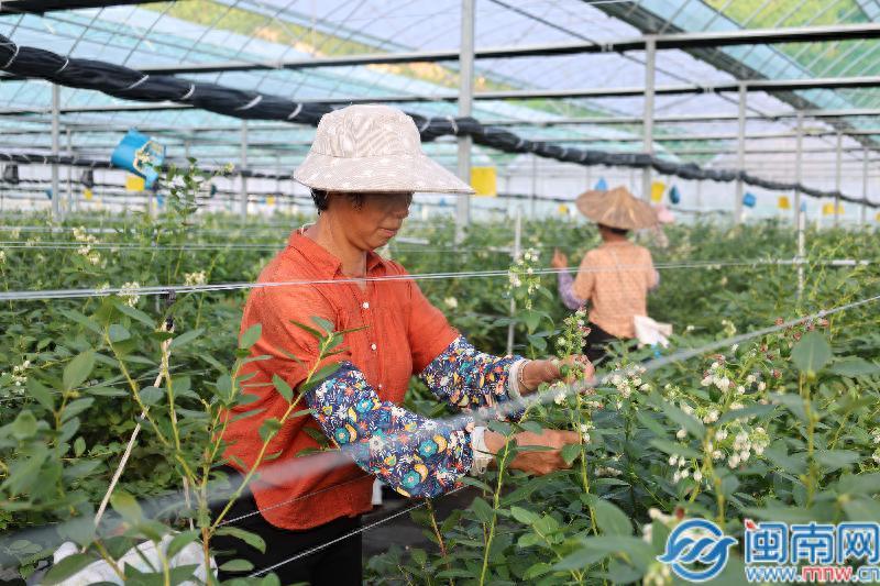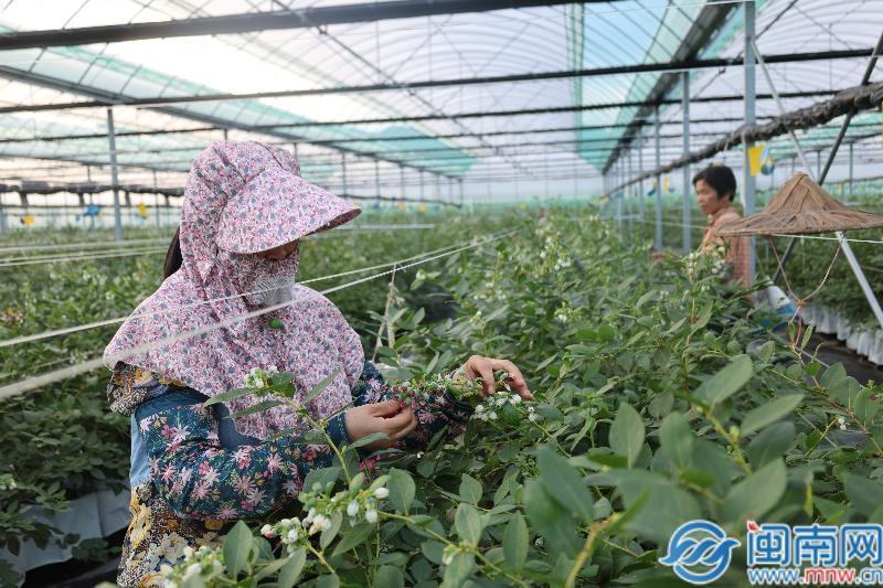 据了解,目前在此忙碌的工人均为林墩本地村民,经培训已熟练掌握疏花技术。基地内种植的花香蓝莓,经过遮光促早处理后,现已初挂幼果,长势良好。预计将于今年11月底12月初进入采摘期并陆续上市,届时将为市场带来新鲜的本地优质蓝莓。